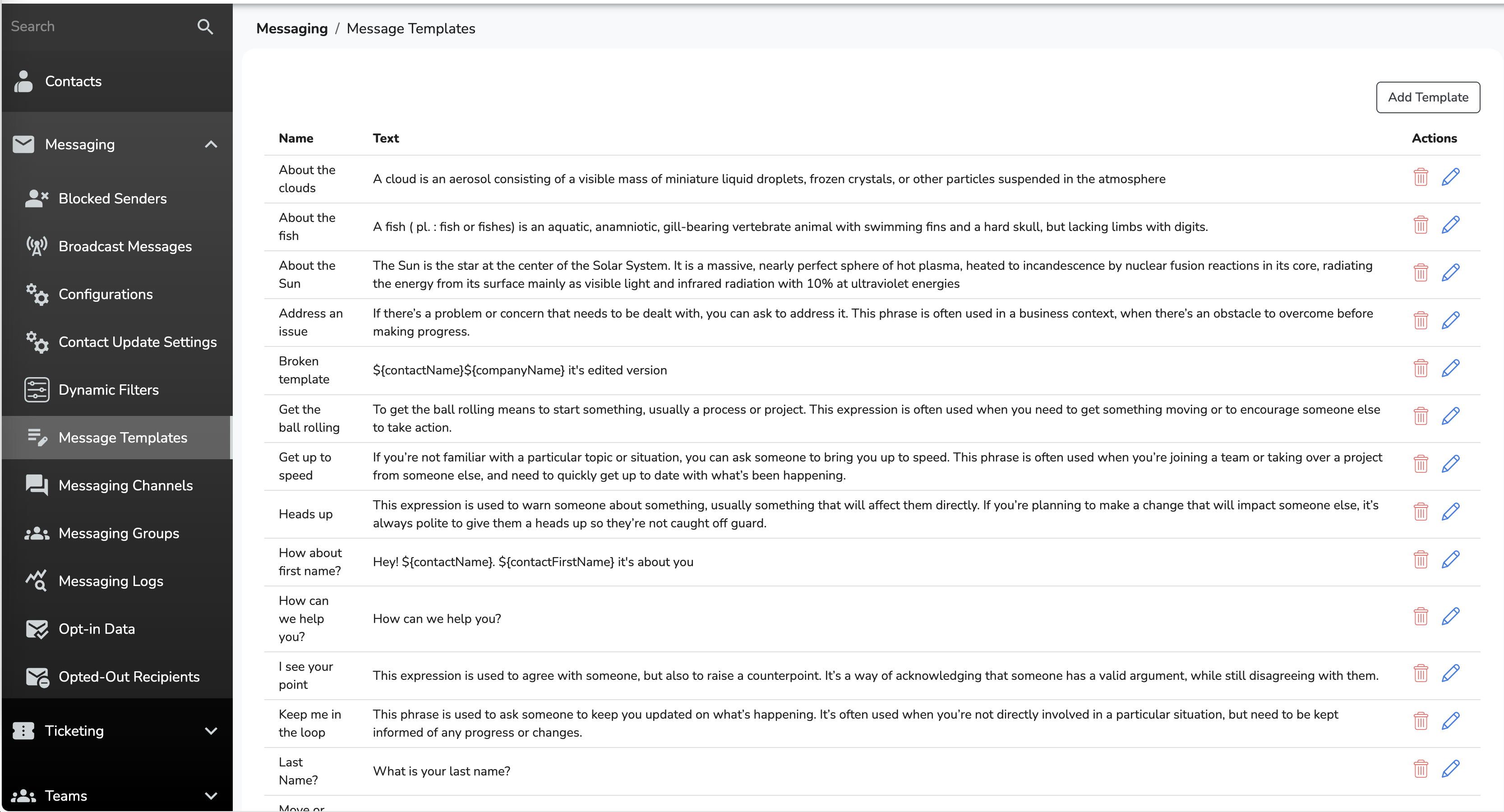 Your team will often send the same kinds of text messages to your customers: