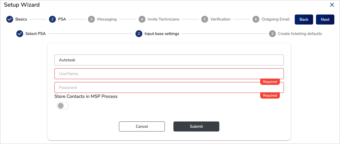 - Navigate to the Integrations -> PSA Integrations page