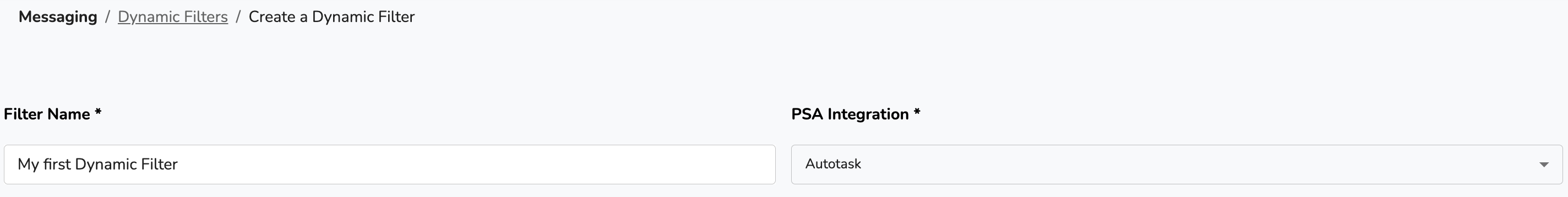 - Give your Dynamic Filter a name, and choose your PSA integration:
