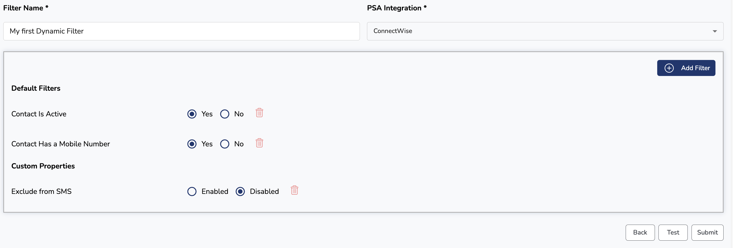 The Dynamic Filters feature supports both Autotask and ConnectWise.