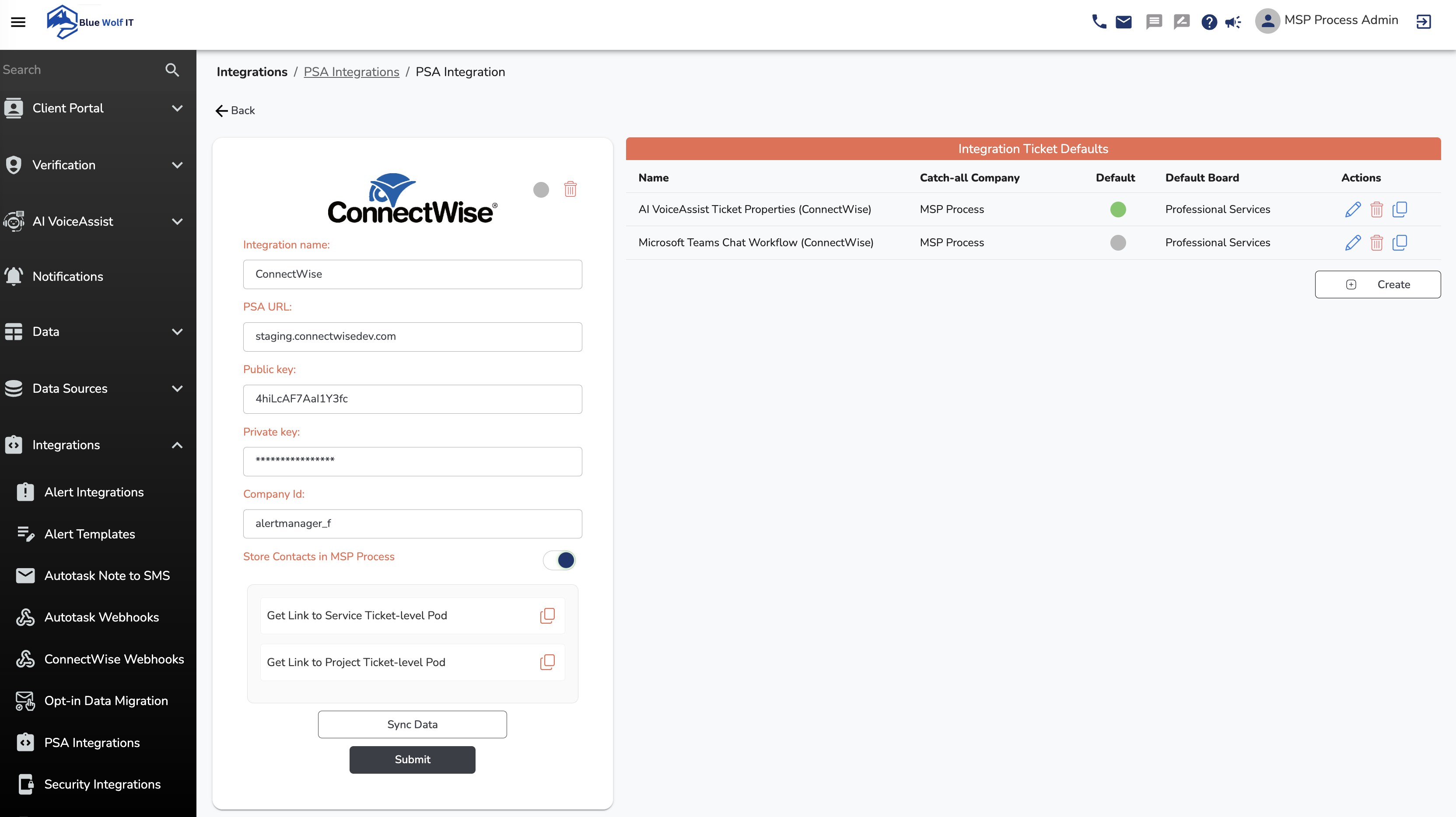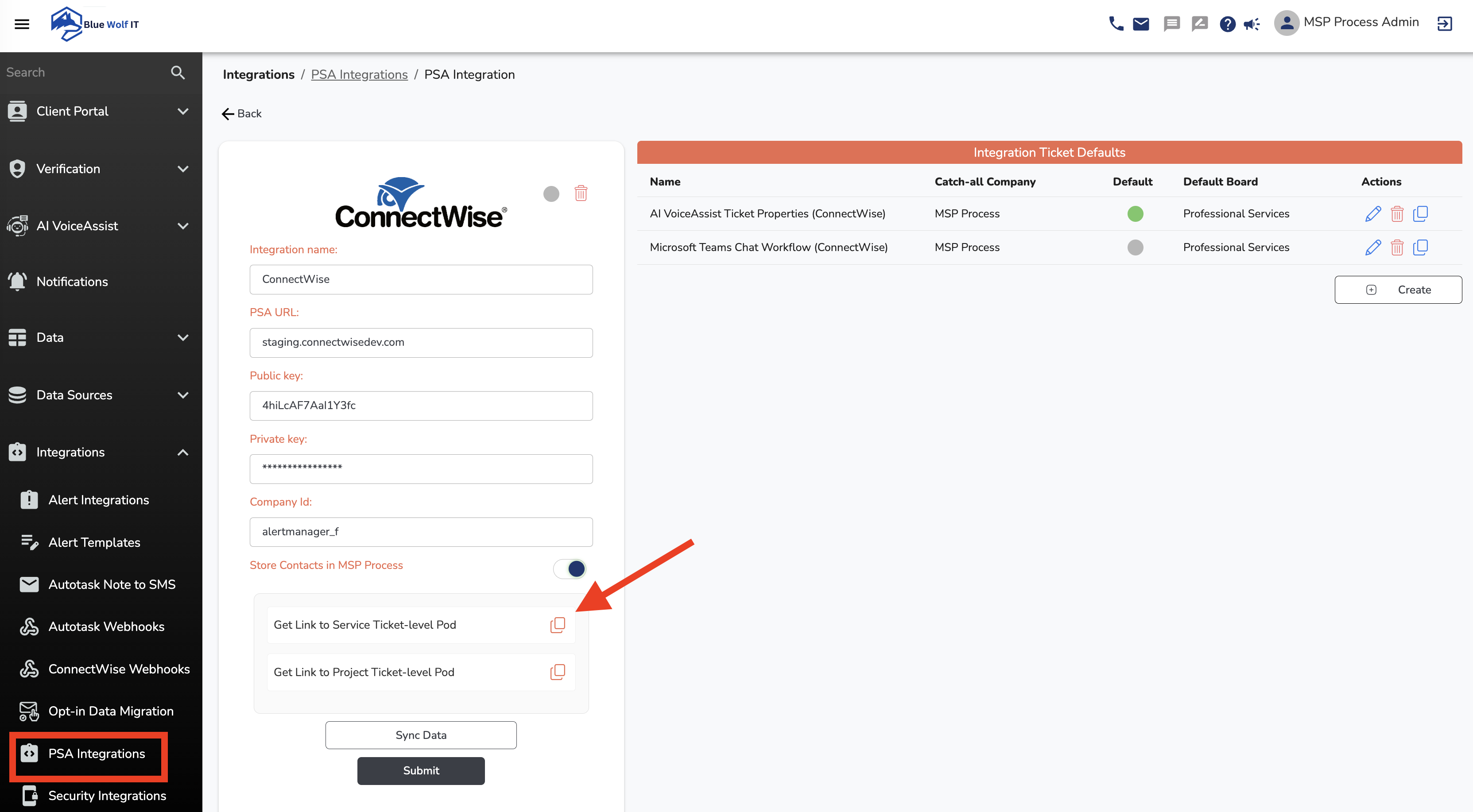 - Navigate to the Integrations -> PSA Integrations menu