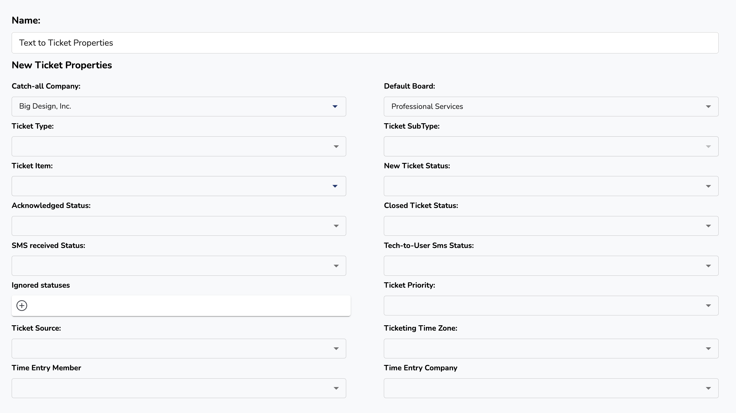 SMS Received Status - When an SMS is received from a user the system can automatically update the status of the ticket. We usually recommend creating a status such as "SMS Received" that way whoever is working the ticket knows an SMS was received.