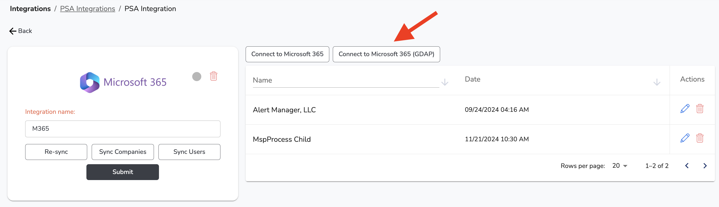 - Click on the Microsoft 365 card that is now listed on the PSA Integrations page