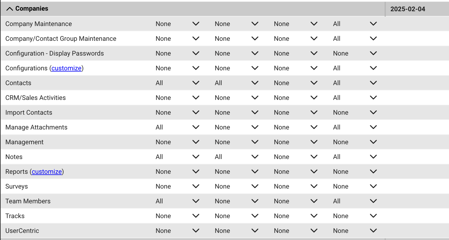 Member Maintenance: Inquire (All) My Company: Inquire (All) Table Setup: Inquire (All) |