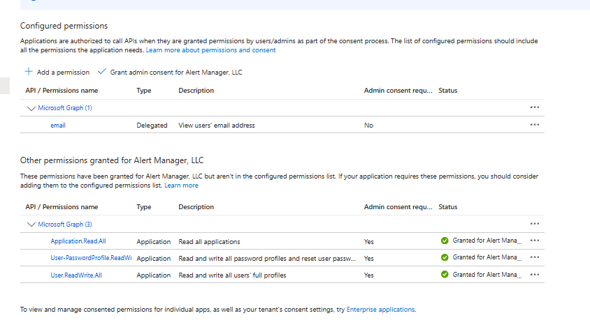 - Within the App Registration that you just registered, navigate to the Manage -> API permissions blade