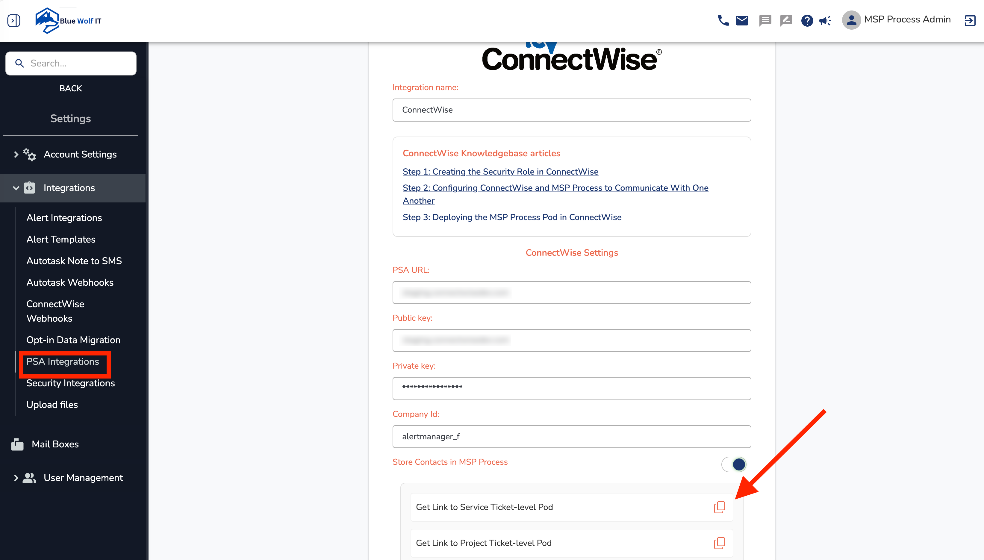 - Login to the MSP Process UI (https://app.mspprocess.com) as an Admin-level user