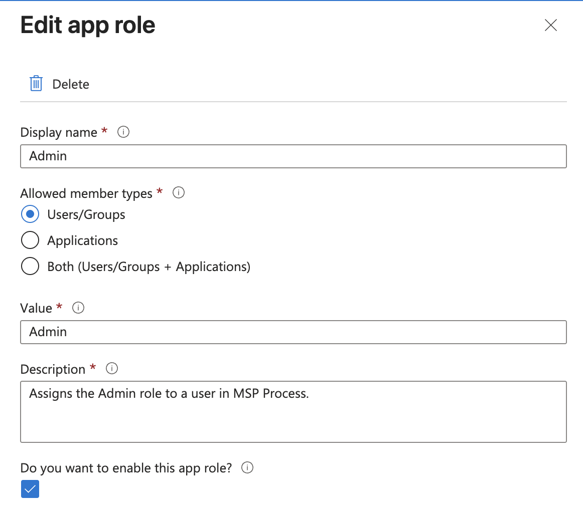 6. You may then save and close the MSP Process Security Role.